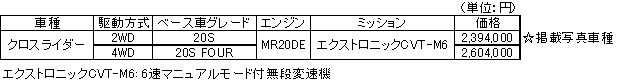 <デュアリス「クロスライダー」車両概要>